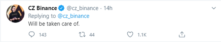 — CZ 🔶 BNB (@cz_binance) September 12, 2020