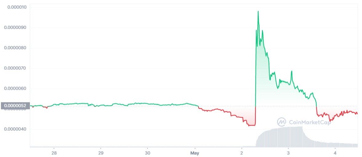Auparavant inconnue au bataillon, cette dernière, qui serait lancée par une organisation autonome décentralisée qui soutient des projets blockchain innovants, a grimpé de 88,67 % en l’espace de quelques heures.