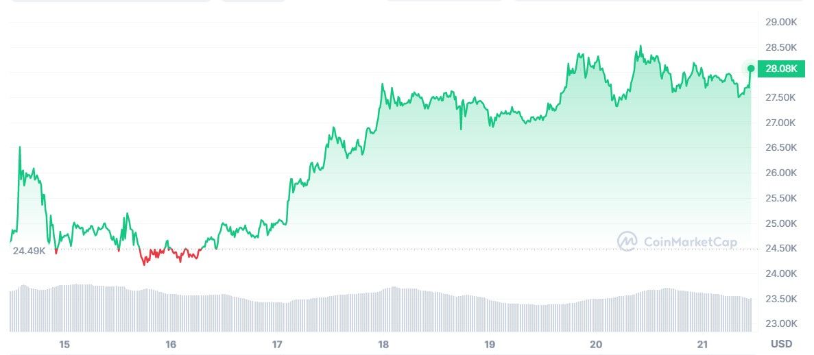 Les beaux jours sont donc à nouveau de retour dans la crypto… mais les premiers nuages pourraient déjà se faire entrevoir. Alors que Bitcoin a atteint les 28 000 dollars, certains analystes prévoient un ralentissement de son ascension pour cette semaine. La stagnations semble donc éminemment au programme.