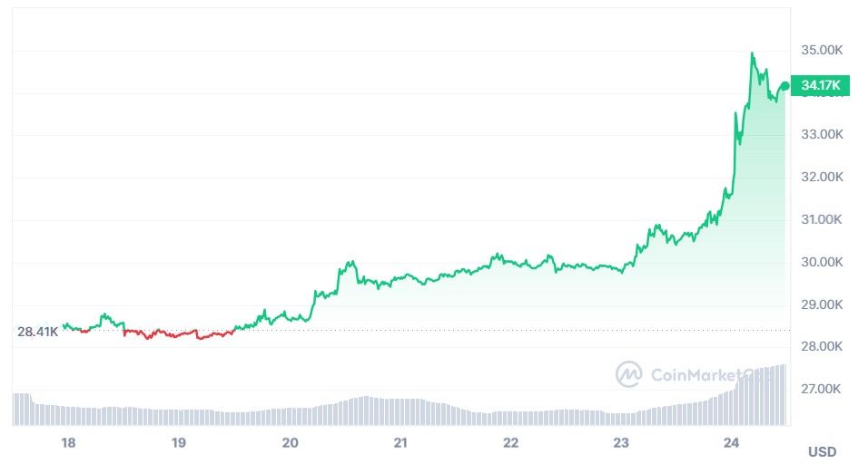 👉 Le cours du Bitcoin vient d’atteindre son sommet de l’année 2023