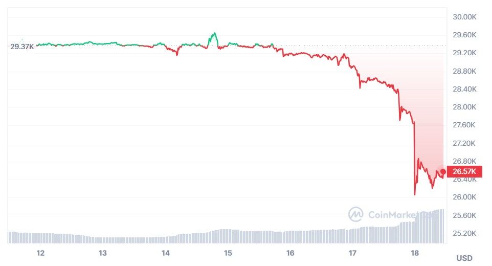 On croyait le bear market terminé mais il n’en est rien : Bitcoin et l’ensemble des cryptomonnaies ont perdu près de 10 % de leur valeur au cours de la nuit.