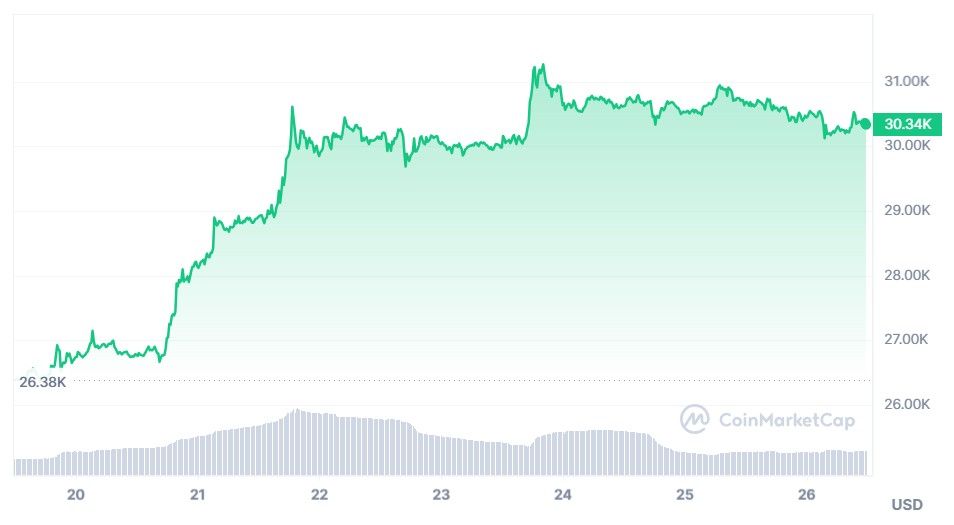 Malgré les derniers événements survenus en Russie, le cours Bitcoin continue mystérieusement de se maintenir. Le principal actif numérique se maintient autour de 31 000 dollars, proche de son plus haut annuel.