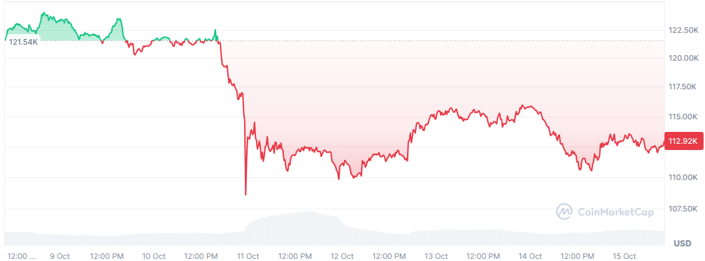 Le rejet du Bitcoin dans une zone d’offre le 12 octobre a accentué la prudence : l’OI a reculé de 2,37 %, traduisant la réticence des opérateurs à reprendre des positions à fort effet de levier.