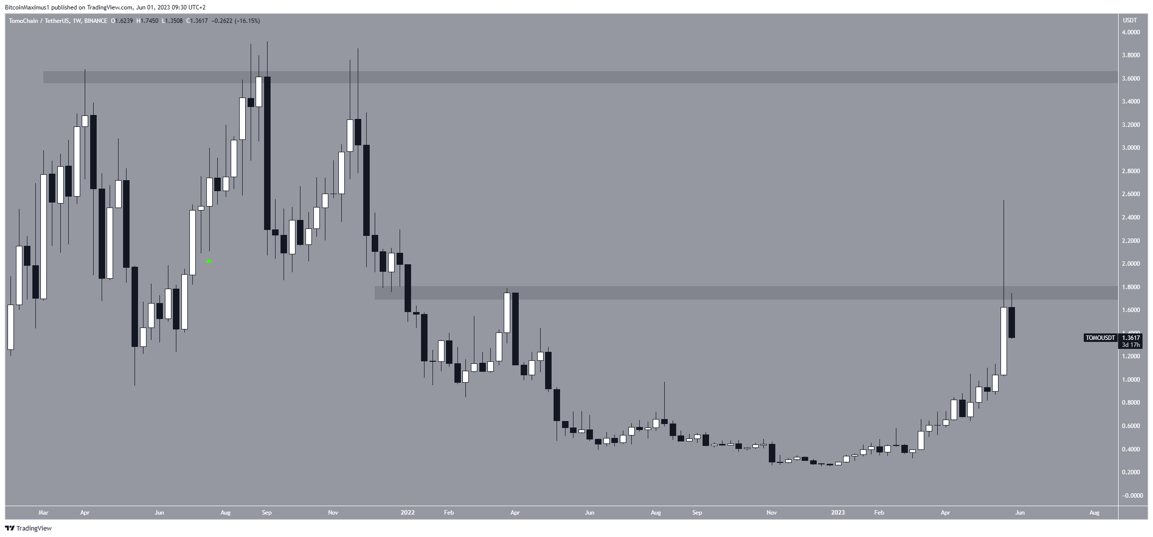 Le cours de la crypto TOMO a enregistré une hausse massive la semaine dernière. Elle a atteint un nouveau record annuel de 2,55 dollars. Pourtant, l’altcoin n’a pas pu maintenir son mouvement de hausse.