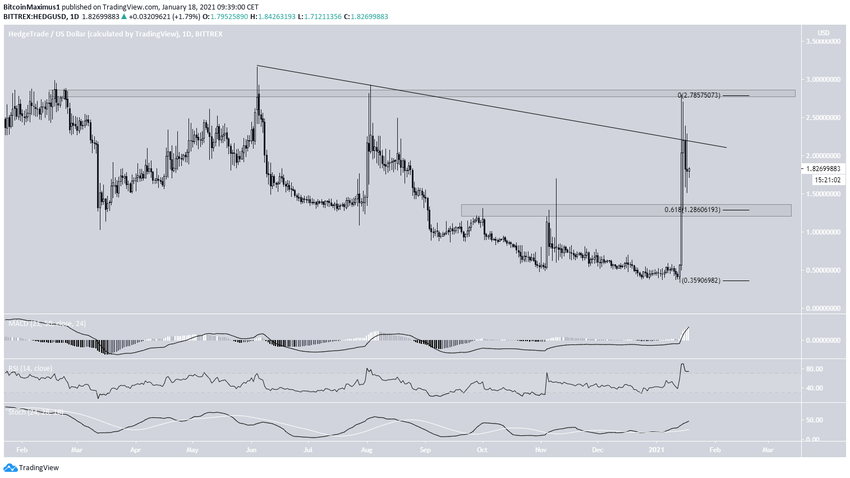 Le HEDG suit une ligne de résistance descendante depuis qu’il a atteint un sommet à 3,15 dollars le 4 juin 2020. Le cours a validé la ligne plusieurs fois à ce jour, la dernière remontant au 16 janvier, lors du mouvement ascendant de la semaine passée.