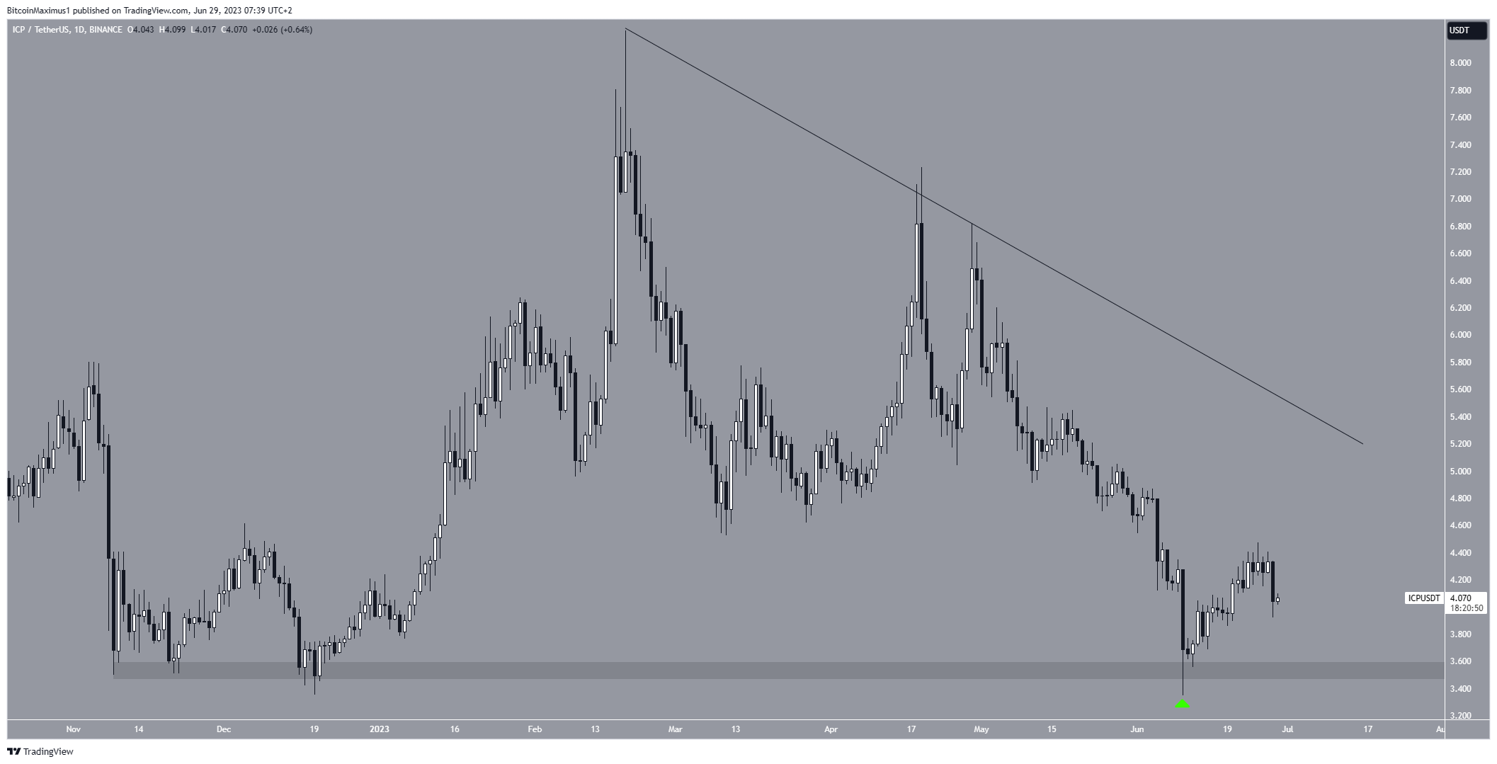 Alors que le cours de l’altcoin ICP est tombé à un plancher annuel le 10 juin, il a ensuite affiché un solide rebond, créant au passage une longue mèche inférieure. Cette mèche est considérée comme un signe de pression d’achat, car les vendeurs n’ont pas pu faire baisser le cours de l’actif.