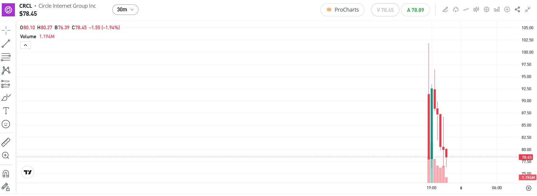Après les sommets de milieu de journée, l’action CRCL se négocie toujours dans le vert avec un prix d’échange de 78,45 $ au moment de la rédaction. Alors que le cours de l’action se calme enfin, les meilleures mèches ont propulsé CRCL au-dessus des 100 $.