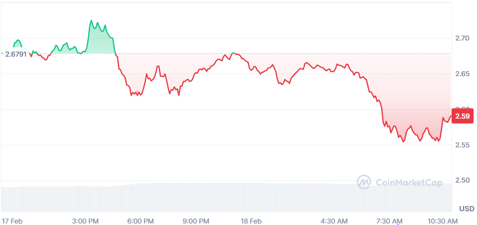 Tout comme le reste du marché crypto, le cours du XRP traverse une période de turbulence avec une baisse de 3,5 % sur 24 heures, stabilisant son prix autour de 2,55 $. L’actif numérique a rencontré une résistance significative à 2,70 $ et a été fortement rejeté cette nuit.