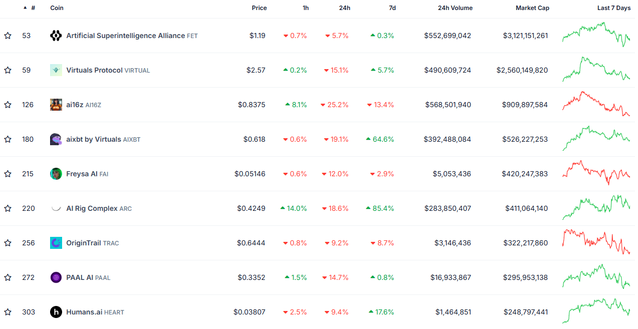 Plusieurs des principaux jetons de la narrative comme VIRTUAL, AIXBT et AI16Z ont ressenti un certain mal être au cours des dernières 24 heures.