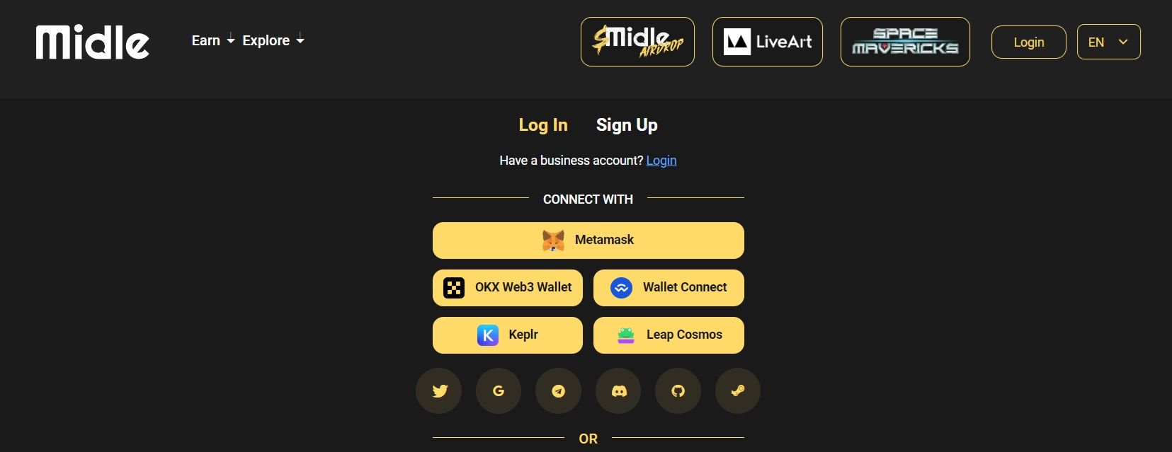 - Rendez-vous sur le site internet de Midle et connectez votre Wallet crypto.