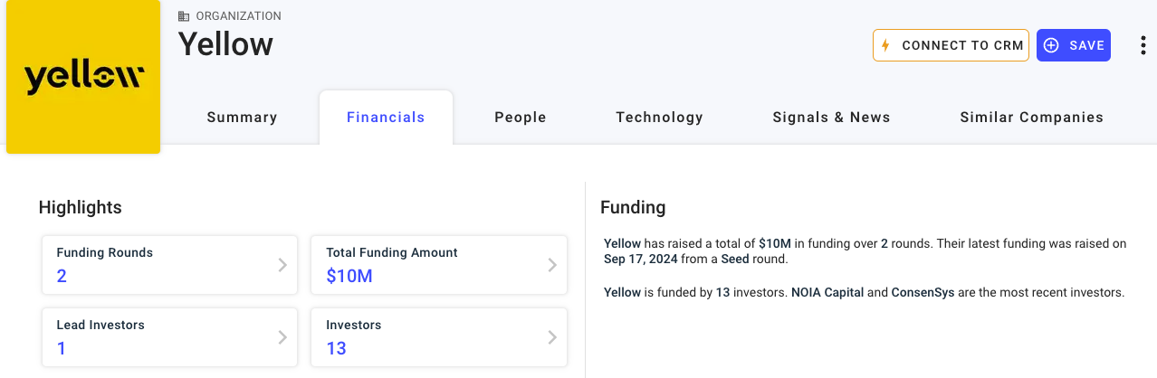 Finances de Yellow. Source : Crunchbase