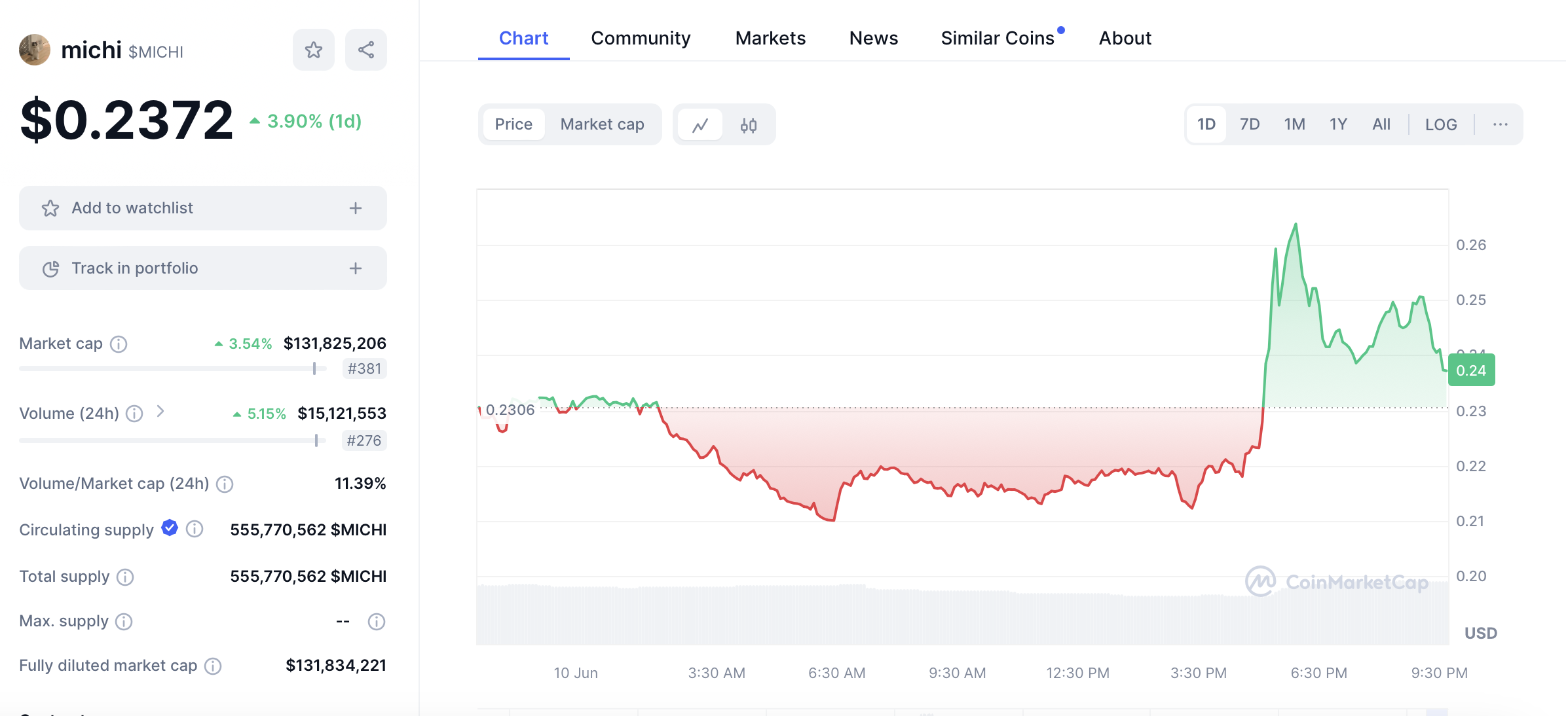 Toutefois, le cours de Michi a profité de ce contexte pour augmenter de près de 3,90 % au cours des dernières 24 heures.