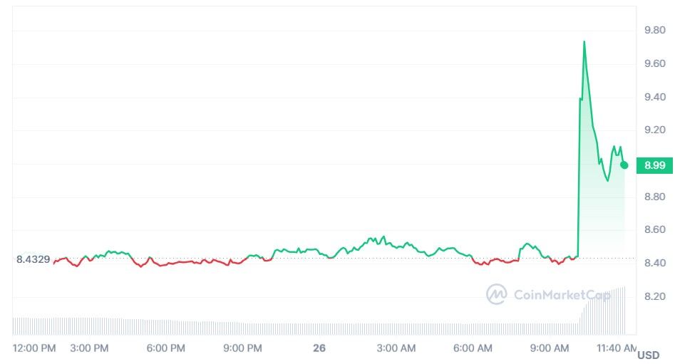Néanmoins, en atteignant les 9 $, l’altcoin a su en faire une résistance et semble en bonne voie pour rebondir dessus. L’analyste VikingXBT estime toutefois que le vrai bull run commencera lorsqu’il aura dépassé les 11 $, sa plus grande résistance.
