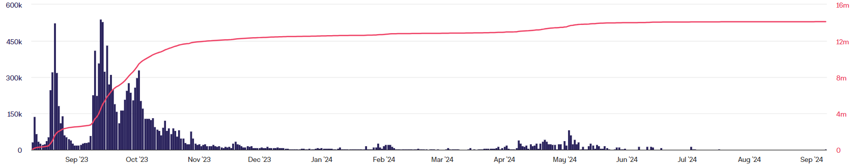 Friend.Tech a eu un tel succès à son lancement qu’il semble difficile de croire que celle-ci n’aura existé qu’un an. Après des afflux explosifs entre septembre et octobre 2023, le volume de transactions du projet a chuté de 97 %. Il n’a pas réussi à reprendre par la suite, notamment à cause d’accusations de Ponzi et une épidémie de hacks.
