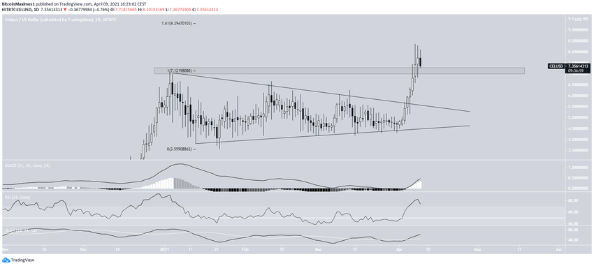 L’altcoin CEL se négociait à l’intérieur d’un triangle symétrique depuis le 3 janvier, date à laquelle il a atteint un sommet de 7,12 dollars.