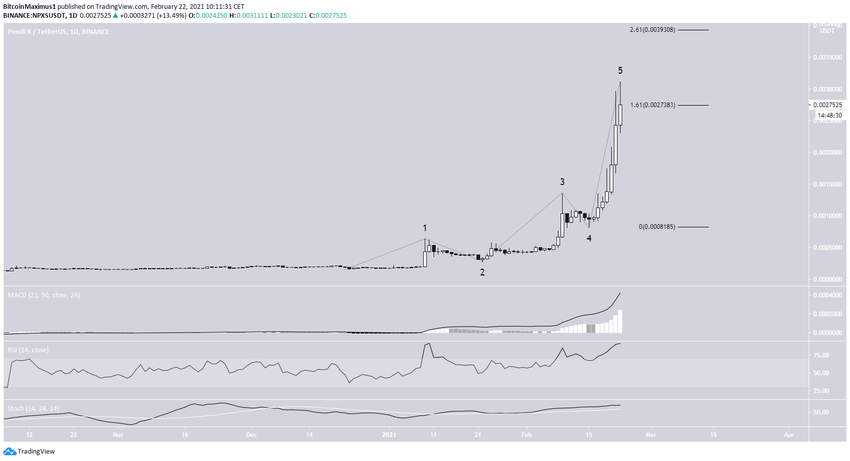 Le NPXS s’est accru de manière considérable depuis le 23 décembre 2020, date à laquelle il s’échangeait à un creux de 0,0001546$. Jusqu’à présent, il a augmenté de 1 900%, atteignant un cours record de 0,0031$ le 22 février. Cette hausse a conduit le NPXS au 86ème rang des cryptomonnaies en termes de capitalisation boursière.