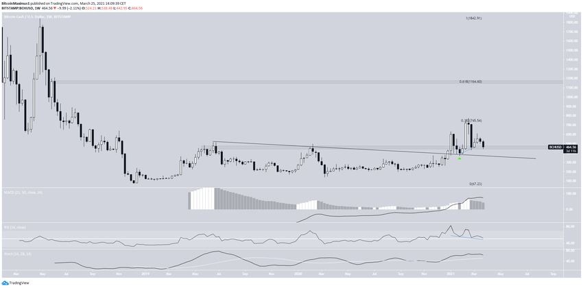- Le BCH s’échange au-dessus de son support de long terme situé à 465$.