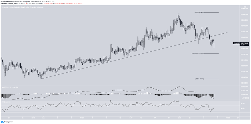 Verge (XVG) est donc passé sous une ligne de support ascendante, et cherche à trouver un support.