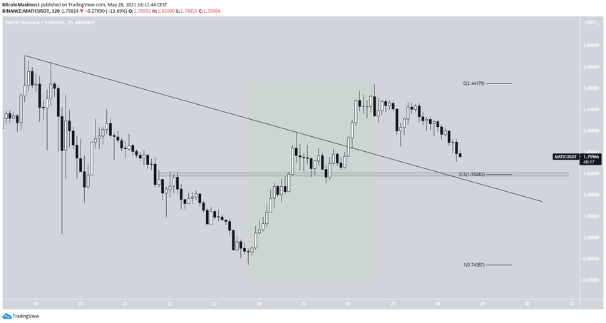 Le cours du token MATIC a atteint un creux de 0,74$ le 23 mai avant d’amorcer un mouvement ascendant, qui semble être le début d’une nouvelle impulsion haussière. De plus, le MATIC a dépassé une ligne de résistance descendante.