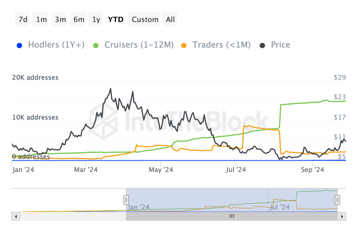 De plus, en se penchant sur les adresses par durée de détention montre que de nombreux investisseurs qui possèdent cet altcoin depuis le dernier mois jusqu’aux 365 derniers jours se sont abstenus de le vendre. Cela suggère donc une forte conviction dans son potentiel à court et long terme et que le cours du PRIME pourrait ne pas subir de correction majeure de son cours.