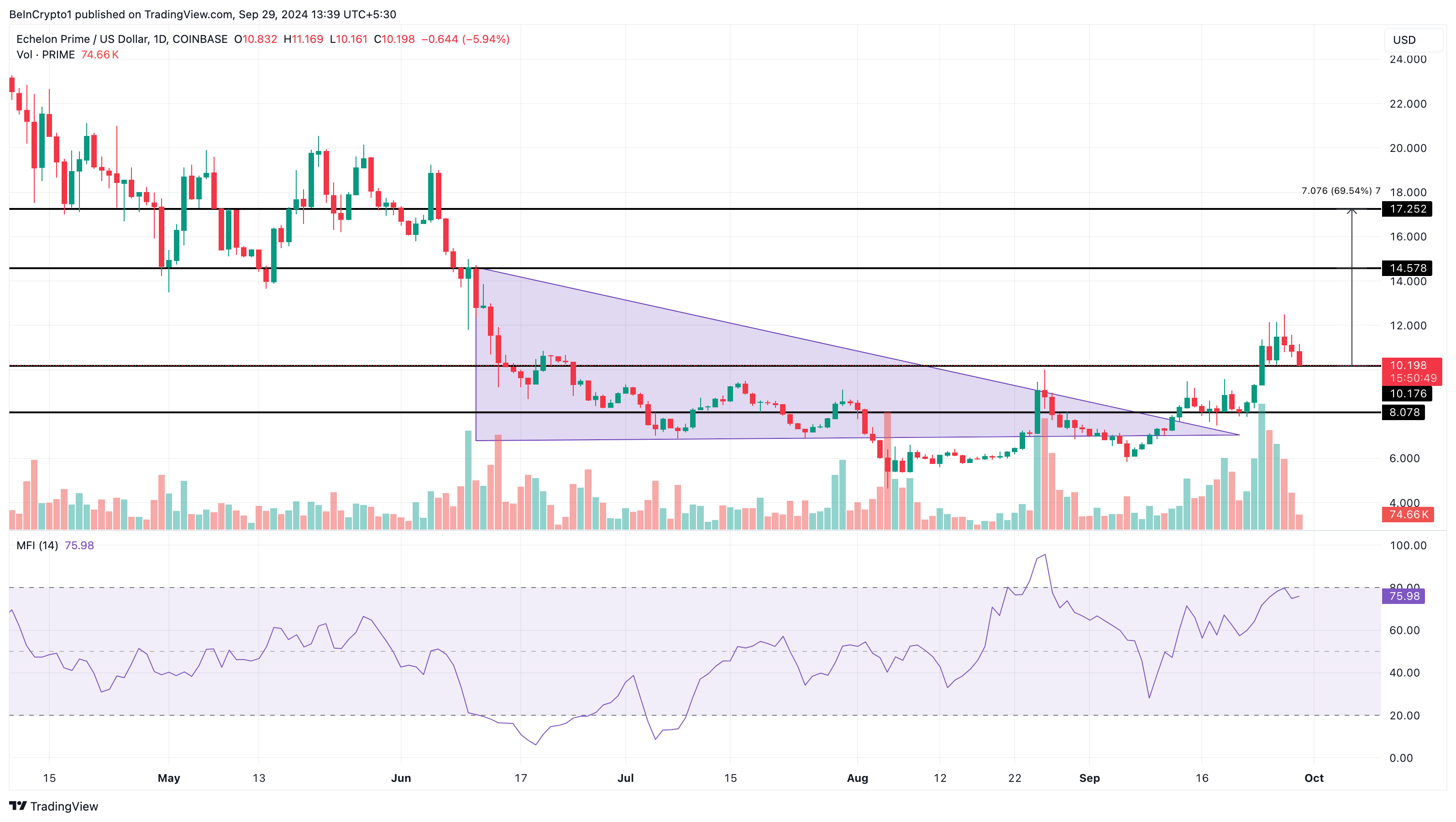 Sponsored SponsoredDans ce cas, la valeur de PRIME pourrait grimper de 70 % en octobre, atteignant potentiellement 17,25 $ avant la fin du mois. Au contraire, le cours de l’altcoin pourrait connaître une baisse notable s’il tombe en dessous de 10,17 $. Dans ce cas, il risquerait alors de chuter à 8,07 $.