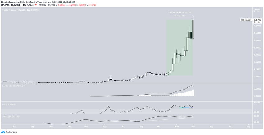 THETA est sur un mouvement ascendant prolongé depuis novembre 2020. Le cours de l’altcoin a augmenté de 675%.