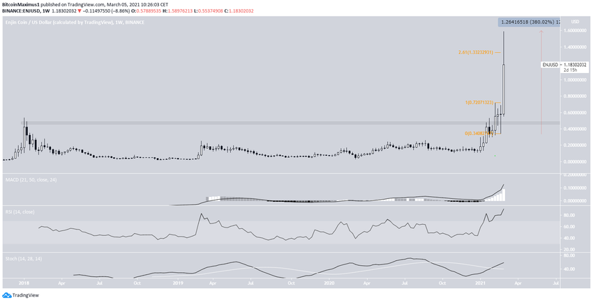 L’altcoin ENJ a progressé depuis qu’il a dépassé la résistance de son ancien sommet historique et l’a validée en tant que support. Cela s’est produit le 23 février. Depuis, l’ENJ est en hausse rapide.