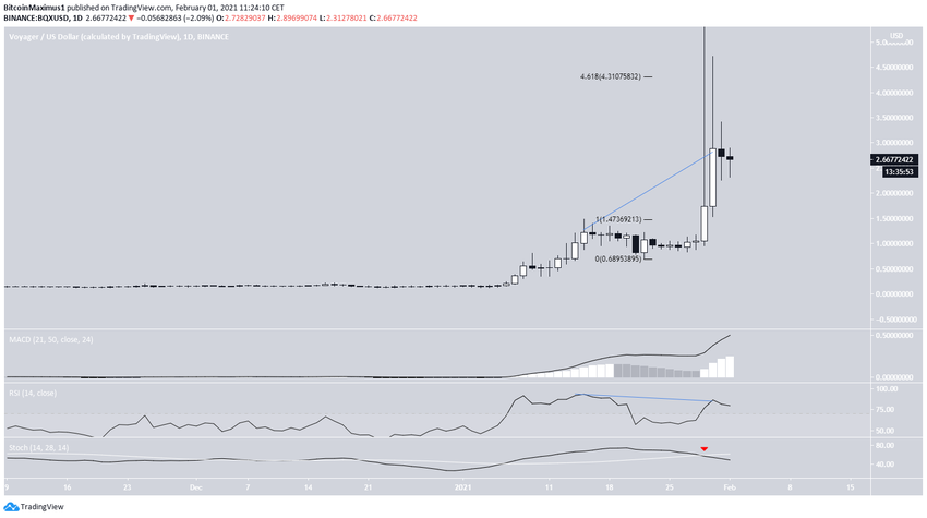 Le XRP a récupéré la majorité de ses gains du 28 au 31 janvier, avec une croissance de 140%. Il s’échange actuellement près du sommet local situé à 0,67$. Tout au long de cette hausse, le XRP est parvenu à regagner la résistance située à 0,47$, et qui devrait maintenant servir de support.