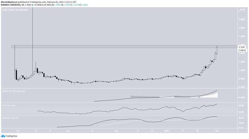 De même que pour le XRP, le CAKE est sur le point de dépasser une zone de résistance cruciale créée par son sommet record.