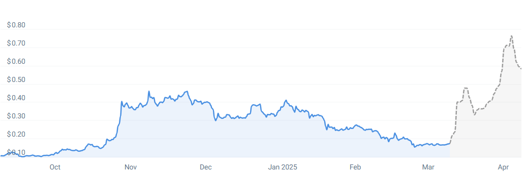 La plateforme CoinCodex parie toutefois sur la hausse avec un bull run qui mènera le DOGE à 0,70 $ entre cette semaine et mi avril.