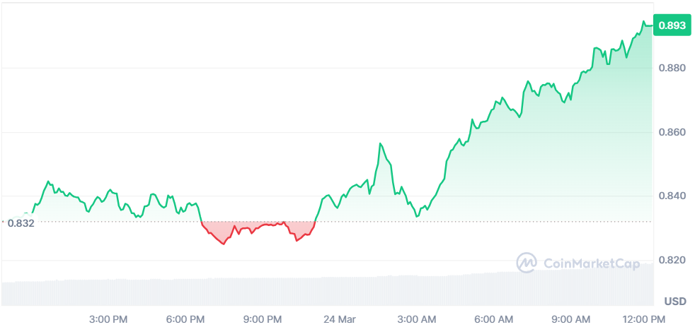 Une cassure confirmée au-dessus du seuil des 0,89 $ déclencherait donc probablement un bull run significatif. A l’heure de la rédaction de cet article, l’ONDO est justement en train de tester la résistance ; préparez-vous à une forte volatilité !