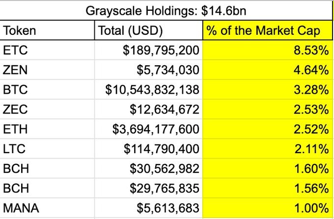 D’après les analystes, Grayscale détient une partie importante de la capitalisation boursière d’ETC, ZEN et BTC. Cela signifie que ces trois actifs seront lourdement impactés en cas de liquidation des réserves de l’entreprise.