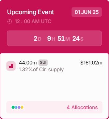Cependant, le jeton devra faire attention en début de mois avec un déblocage de 1,32 % de l’offre en circulation. Le vesting crypto du SUI est prévu pour le 1er juin, avec 44 millions de pièces qui seront “lâchées dans la nature”.