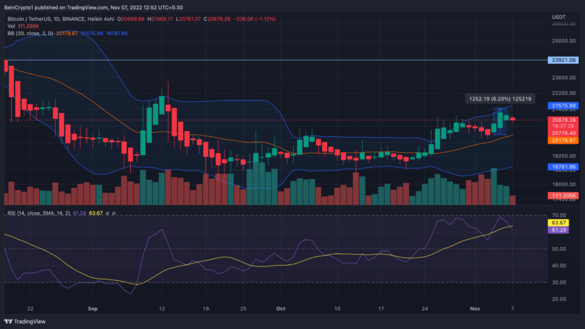 Beaucoup espéraient des gains plus importants lorsque le cours est parvenu à monter au-dessus de la zone de support de 20 500 $. Cependant, une baisse au sein du RSI a indiqué que les vendeurs reprenaient des forces.