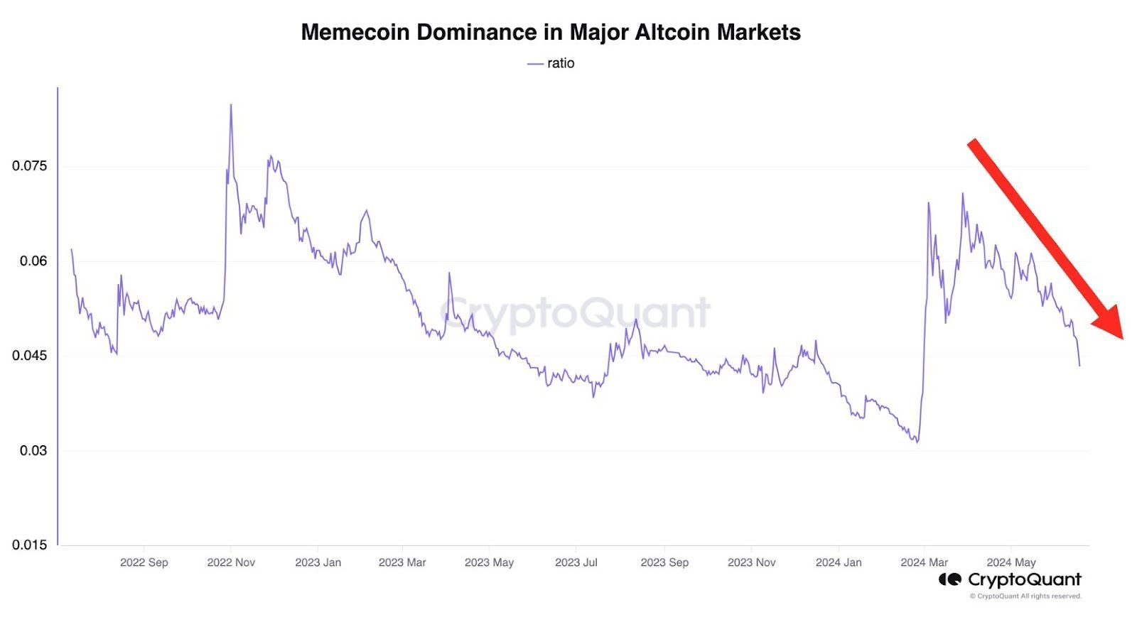 Ki Young Ju, PDG de CryptoQuant, présente quant à lui un point de vue différent. Il a observé un déclin de la domination des meme coins et a fait allusion à un changement de dynamique au sein de la communauté crypto.
