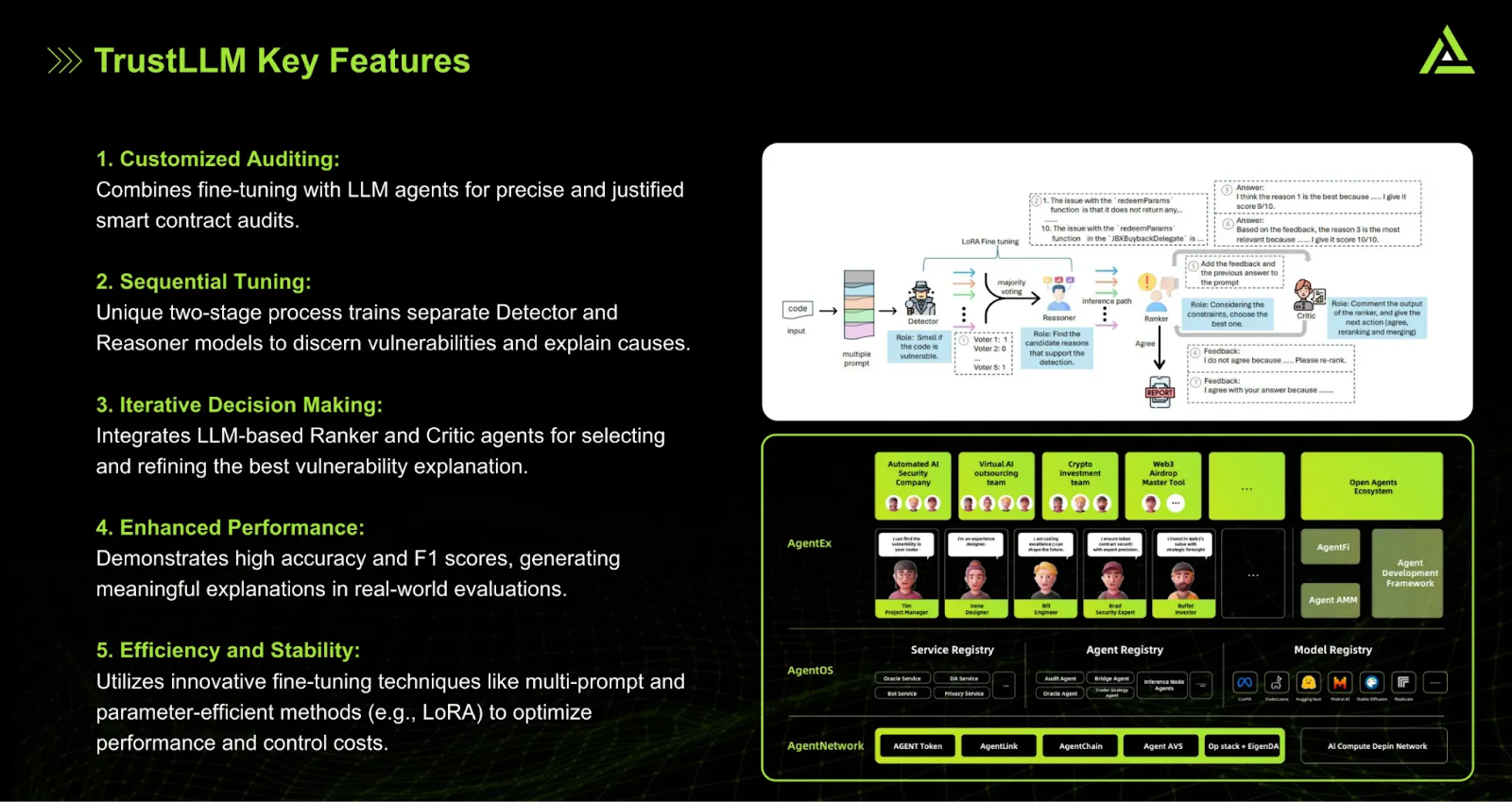 Il héberge des agents autonomes et permet aux développeurs de les créer tout en mettant à profit les capacités d’un réseau décentralisé. L’idée est ainsi de créer une arène efficace, transparente et sécurisée au sein de laquelle les agents d’intelligence artificielle peuvent collaborer et effectuer des tâches allant du plus banal au plus sophistiqué. Cet objectif est rendu possible grâce aux contrats intelligents et à la technologie de la blockchain.