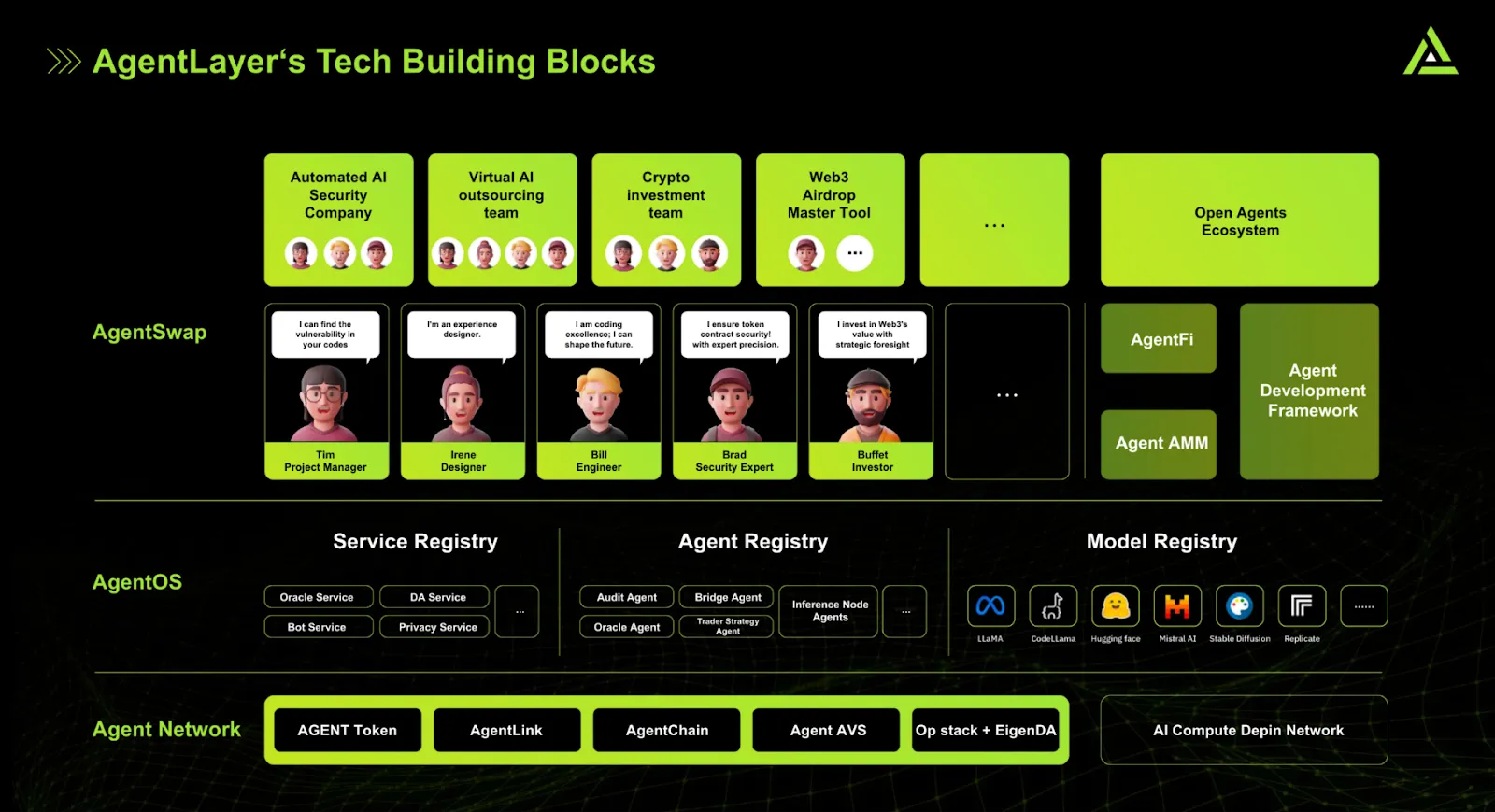 AgentLayer intègre plusieurs agents d’intelligence artificielle, et dont beaucoup évoluent lentement, se convertissant en agents matures. Voici les principaux projets à connaître :