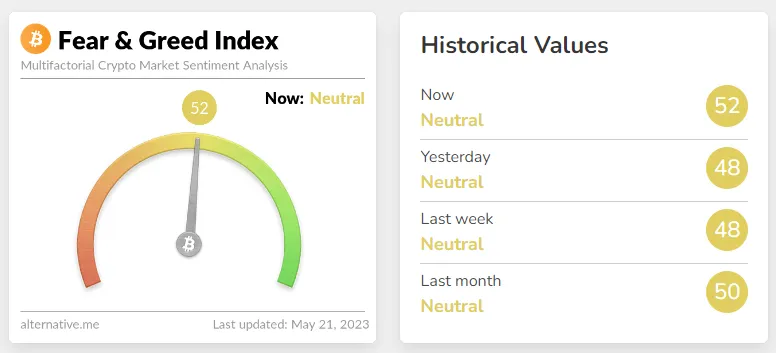 - L’indice Crypto Fear and Greed est un excellent moyen de surveiller le sentiment du marché. Cet indice prend en compte différents facteurs et points de données, tels que la volatilité des prix, le volume des transactions, l’activité des médias sociaux, les sondages et la dynamique du marché, ce afin de déterminer le sentiment actuel sur le marché.