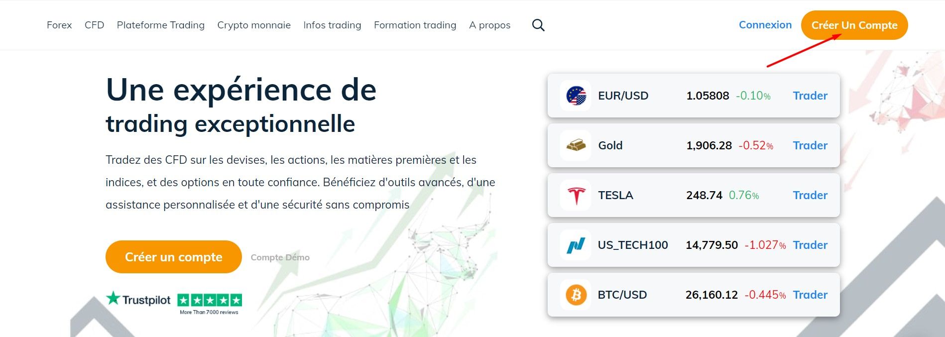 Pour initier votre inscription sur AvaTrade, cliquez sur le bouton “Créer Un Compte” en haut à droite du site officiel.