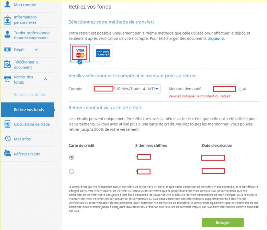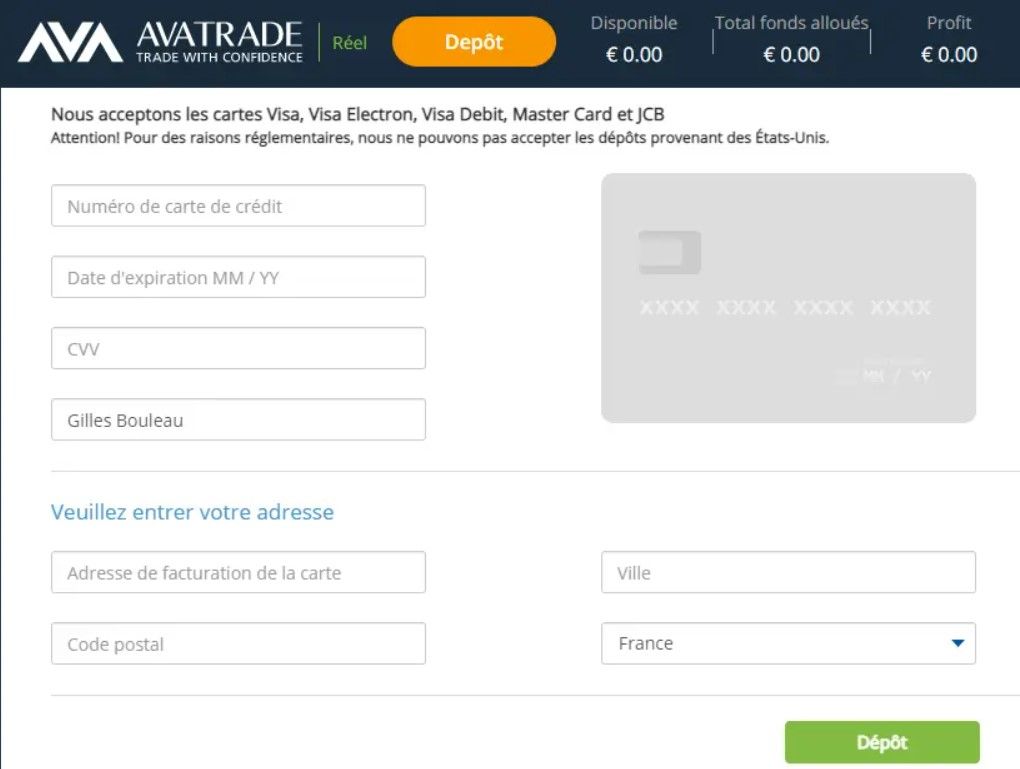 Vous l’aurez donc compris, AvaTrade ne propose que deux moyens de dépôts : la carte bancaire et le virement.