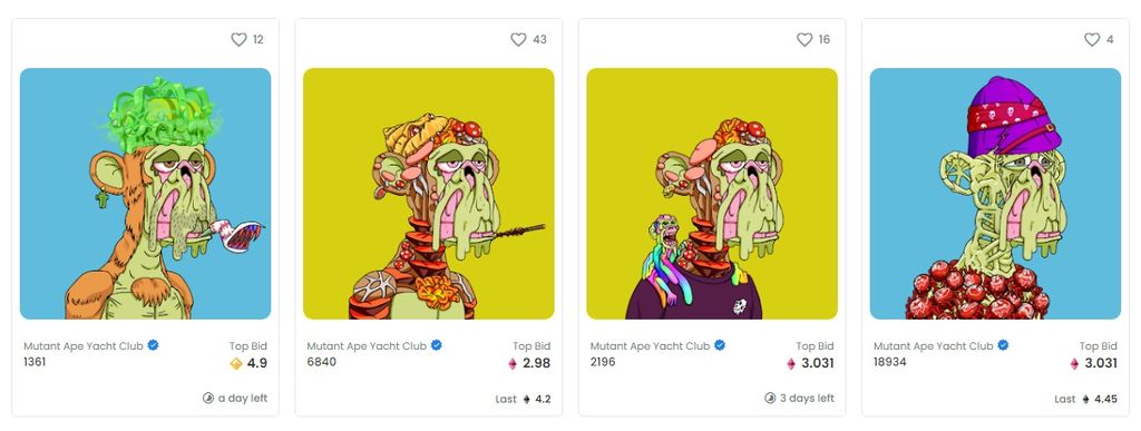 Le sérum se compose de trois niveaux : M1, M2 et Mega Mutant. Lorsqu’il est injecté à un Bored Ape normal, le sérum génère un NFT Mutant Ape Yacht Club.