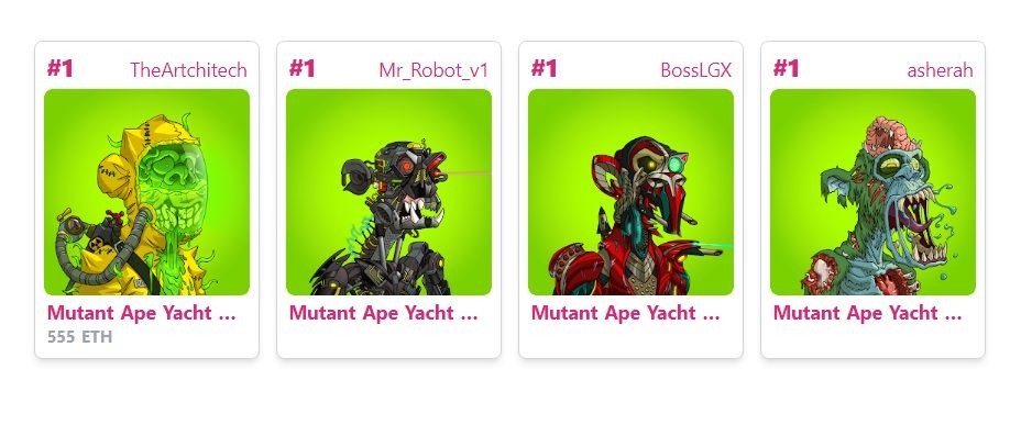 En ce qui concerne les Mutant Apes, neuf d’entre eux détiennent le score de rareté le plus élevé de 15071,64. Cela les place au premier rang des NFT les plus recherchés.