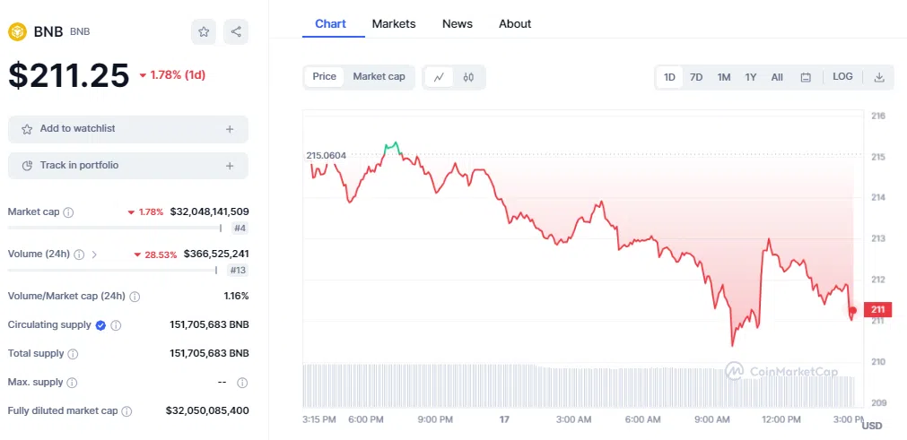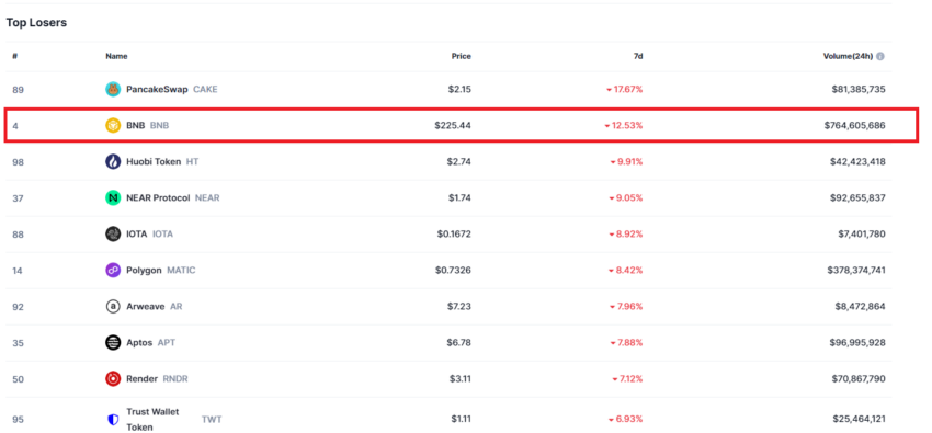 Selon CoinMarketCap, le BNB est la quatrième crypto-monnaie du secteur en termes de capitalisation boursière. Cependant, en se basant sur le volume de trading sur 24 heures, BNB est la neuvième blockchain la plus importante du marché.