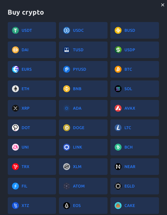 Cliquez sur “Buy Crypto” sur YouHodler afin de consulter les options disponibles pour l’achat de BNB.