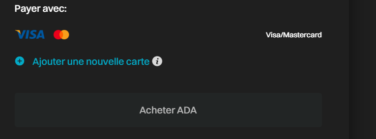 3. Ajoutez les données de votre carte bancaire et cliquez sur “Acheter ADA” pour finaliser la transaction.