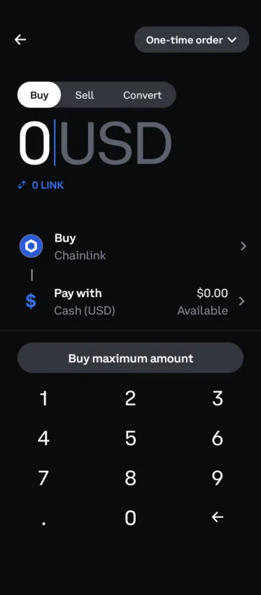 - Tout d’abord, ouvrez l’application Coinbase et choisissez l’option Trade, puis recherchez le token LINK dans la barre de recherches.
