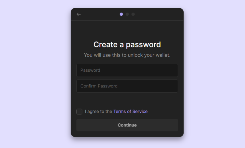 2. Créer un mot de passe : créez un mot de passe solide et acceptez les conditions d’utilisation pour continuer.