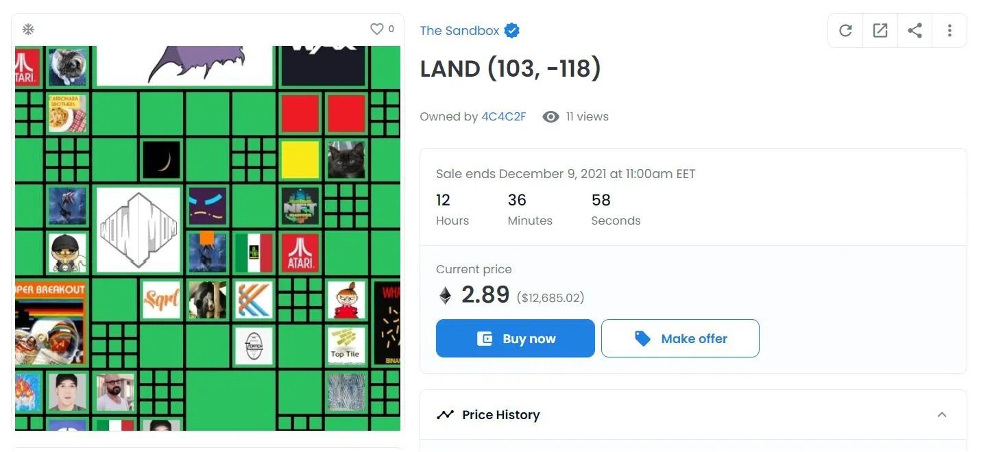Sponsored SponsoredPrenons, par exemple, un NFT de la collection The Sandbox qui appartient à un metaverse virtuel. Comme pour tous les autres NFT, vous trouverez le type de vente (enchère chronométrée ou prix fixe), le prix minimum et toutes les autres informations utiles.