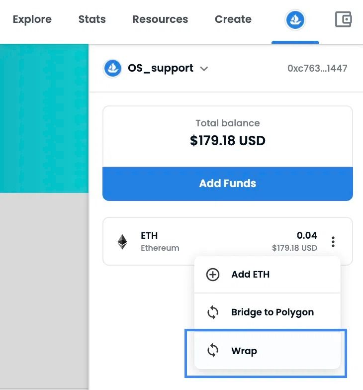 Sur OpenSea, la plupart des ventes de NFT sont libellées en ETH, WETH, USDC ou DAI. Cependant, la plateforme accepte plus de 150 cryptomonnaies. Notez que pour obtenir des Wrapped Ethereum (WETH), vous pouvez convertir vos ETH directement depuis votre portefeuille.