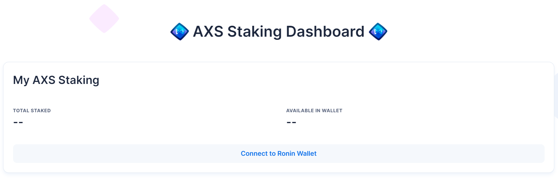 Si vous avez déjà téléchargé l’extension et que vous possédez des AXS dans votre portefeuille Ronin, vous pouvez vous rendre directement sur la plateforme d’Axie Infinity et commencer à staker vos jetons. Pour cela, rendez vous sur la plateforme et cliquez sur “Connect to Ronin Wallet”.